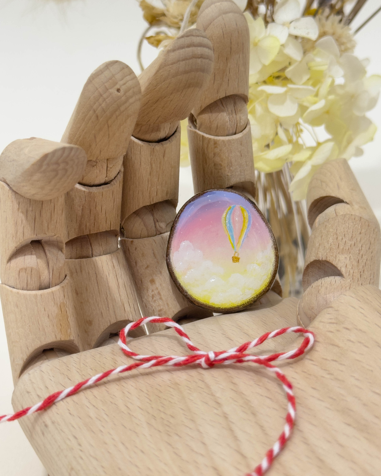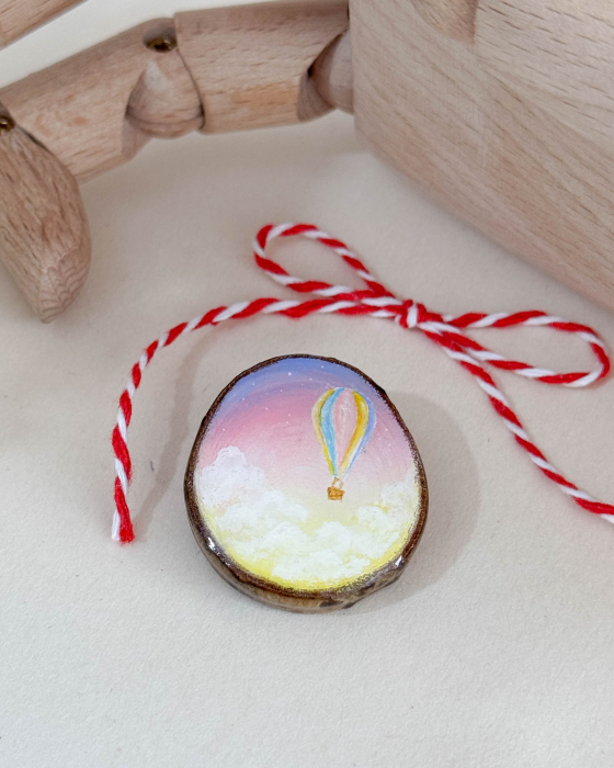 Broșă pictată pe felie de lemn - Deasupra norilor