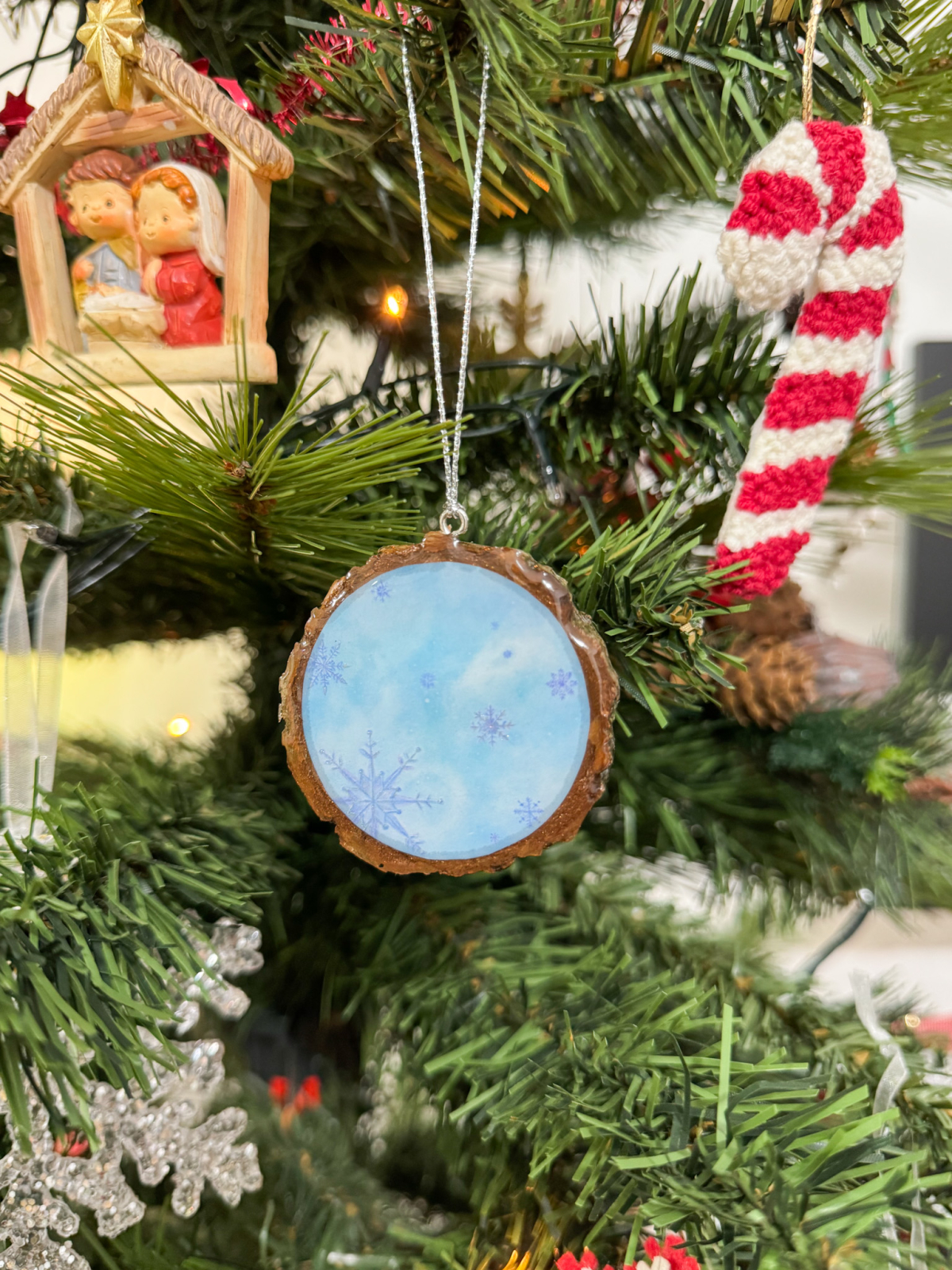 Fiecare ornament începe cu lemnul de soc — tăiat, șlefuit și pregătit manual. Fiecare felie are textura ei, forma ei, personalitatea ei, ceea ce le face pe toate unice.