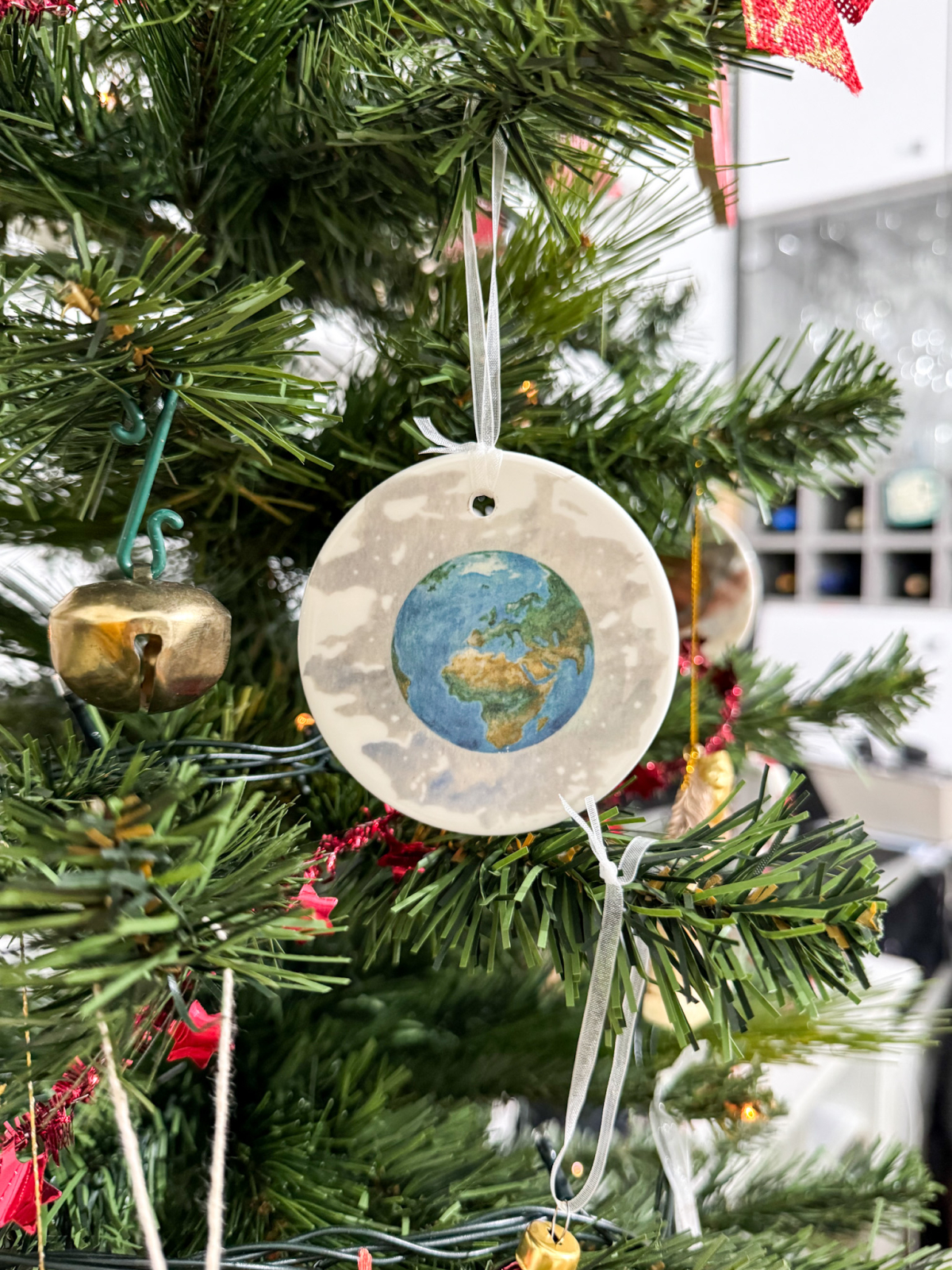 Fiecare disc de porțelan are 7 cm diametru, este ușor, delicat și potrivit atât pentru brad, cât și ca decor pe un suport sau într-un cadou personalizat.