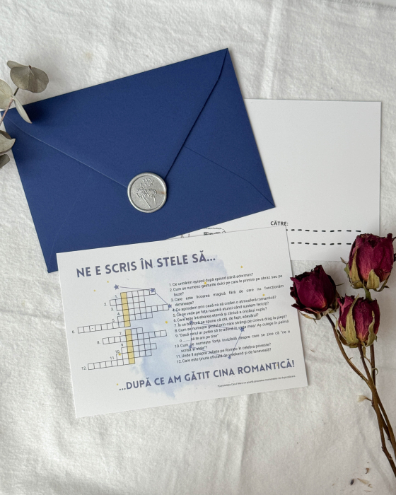 Din ideea asta s-au născut felicitările ”Ne e scris în stele” — mici rebusuri pentru cupluri, construite din lucruri care chiar se întâmplă. Nu promisiuni perfecte, nu declarații siropoase, ci gesturi simple, recunoscute cu zâmbetul pe buze.